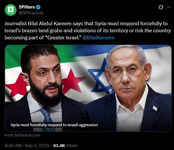Of course, this was met with natural opposition and skepticism, specifically when it came to the Israel question, carrying over a myriad of conspiracy theories from the time the Assad regime had dealt the rebels a serious blow between 2015-2017 with Russia’s heavy assistance, forcing them to regroup and eventually form the coalition under Al-Sharaa (known as Al-Jolani at the time) that would topple the regime last year. These discussions are usually reasoned and well thought, but what ticked me off the most were those who seemed stunned by the fact that when Al-Sharaa took command, his main concern was first and foremost the geopolitical stability of his nation and starting work on its most basic infrastructure and institutions as opposed to a variety of incredibly stupid suggestions that he should have turned Syria into another third world, psuedo-theocratic, militia-run slum.